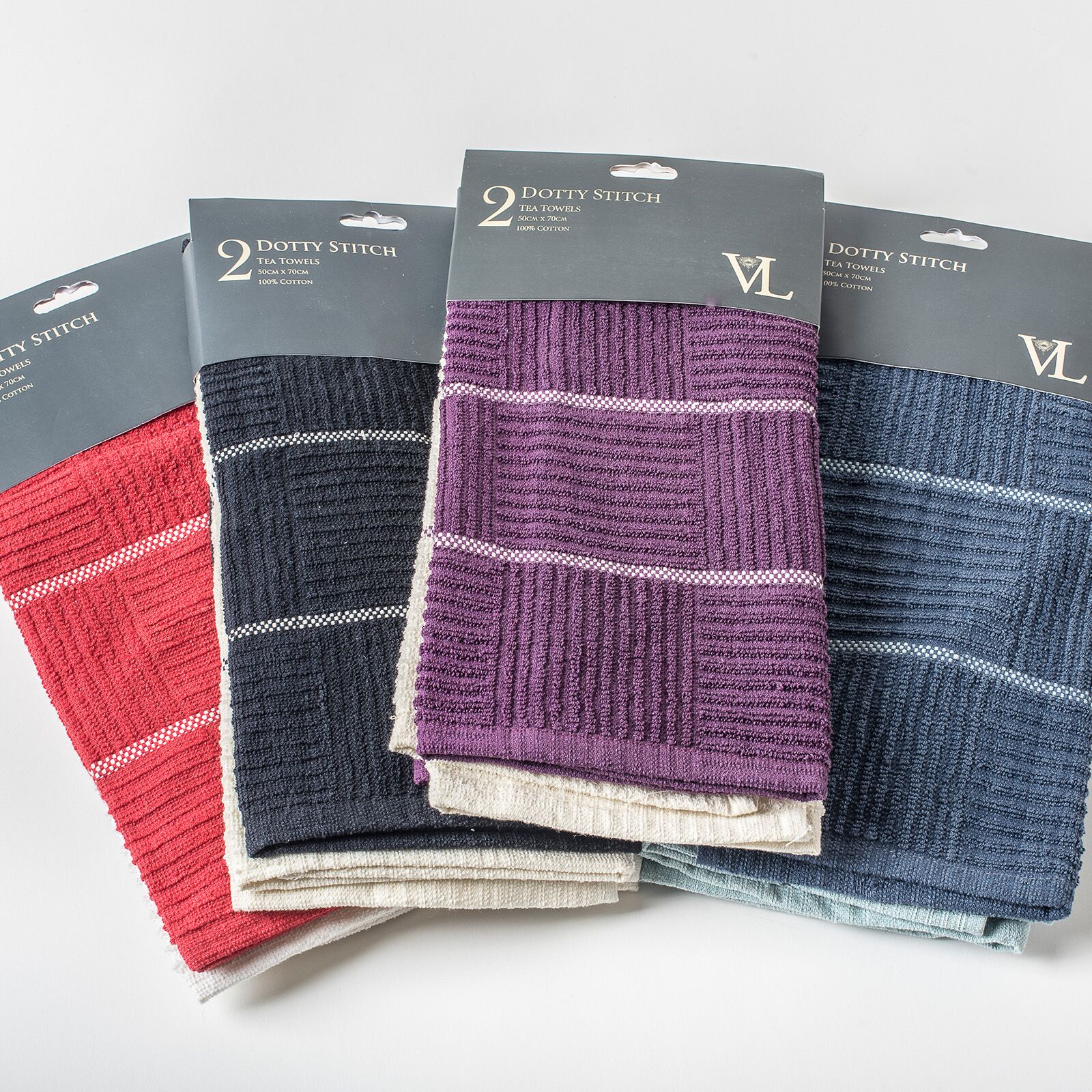 2 Pack Dotty Stitch Tea Towel available in 4 Colour Combinations…